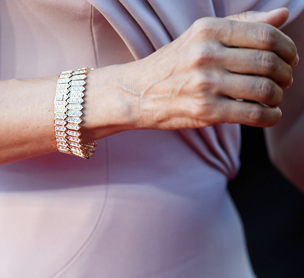 Хейли Болдуин, появившаяся на красной дорожке церемонии открытия в платье Twinset, выбрала комплект украшений de Grisogono. В украшениях этой же марки появилась и португальская модель Сара Сампайо.