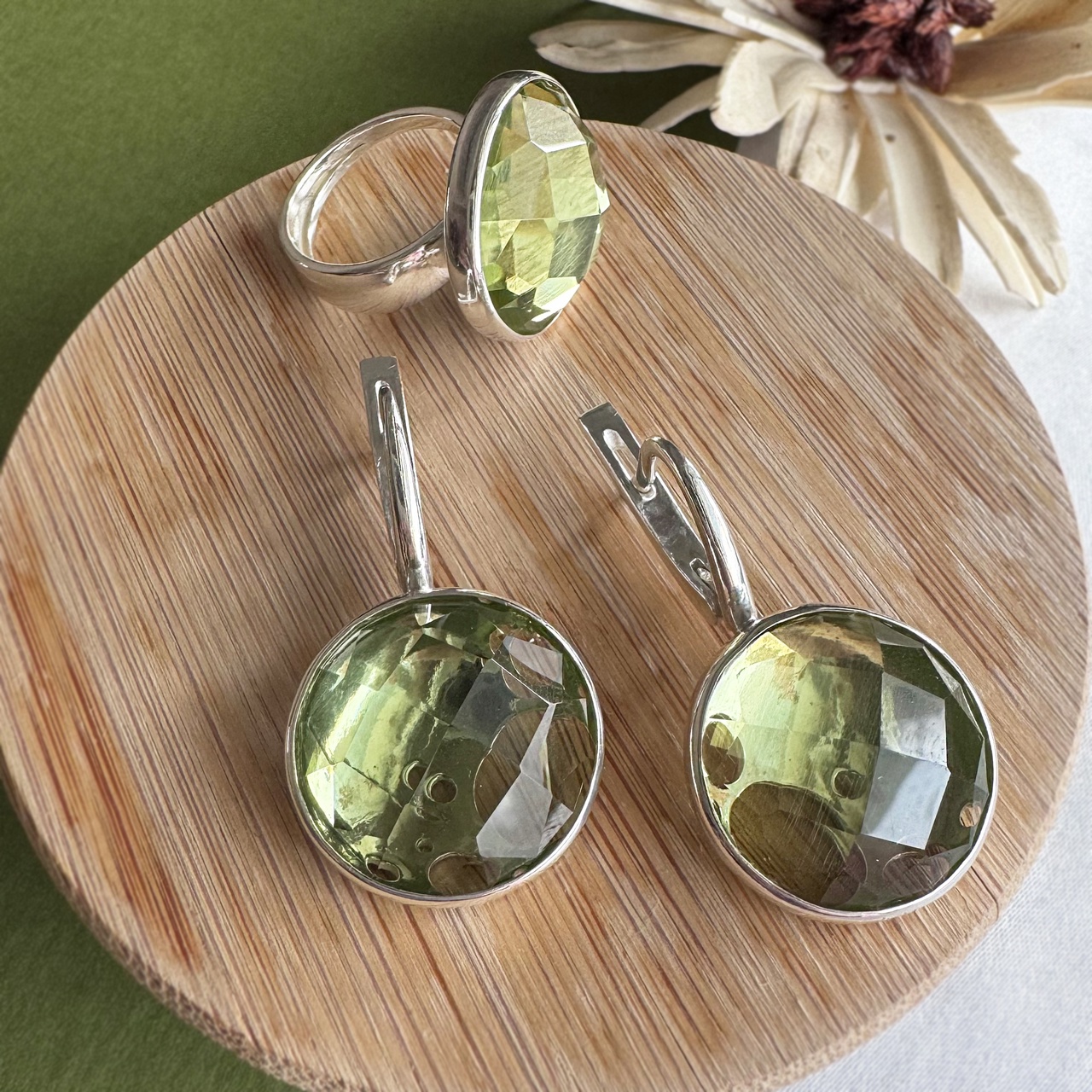 Крупные камни цвета оливы в искрящейся огранке самодостаточны и прекрасны, вот почему для них выбрана самая незаметная оправа. Однако, не все так просто! Обратите внимание на заднюю сторону серьги: на ней присутствуют пустоты – все для того, чтобы камни сияли еще ярче, пропуская через себя свет при носке.