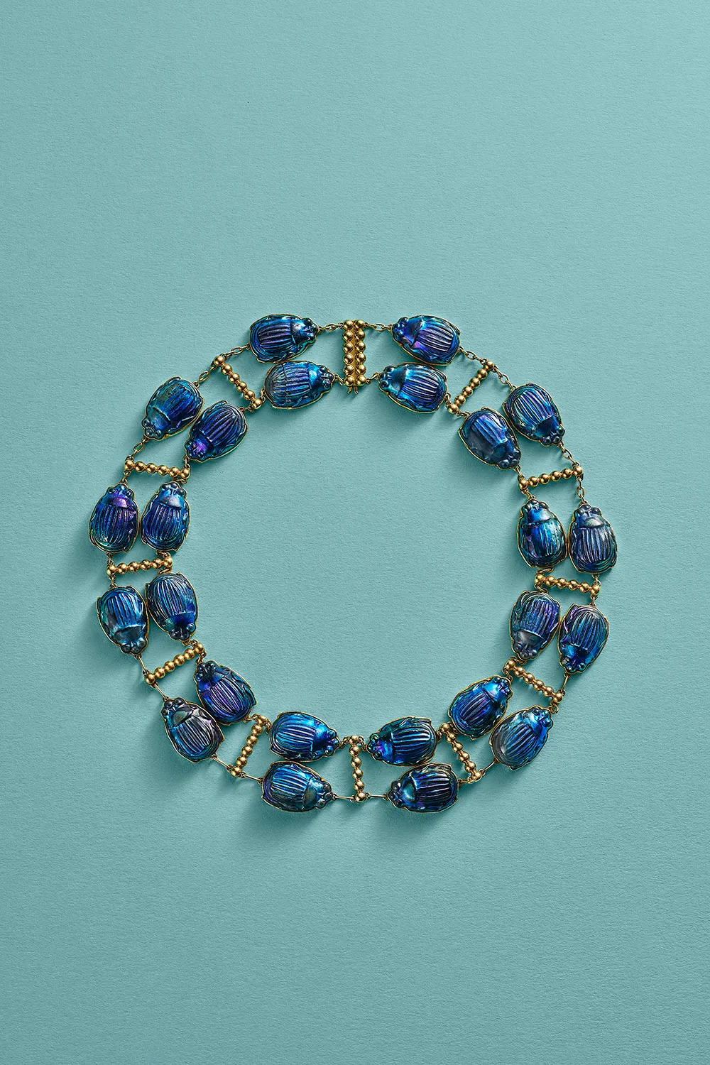 Ожерелье "Скарабеи" 1914 года от Меты Овербек и Джулии Мансон для Louis Comfort Tiffany, которое также носила Миа Гот в фильме «Франкенштейн».