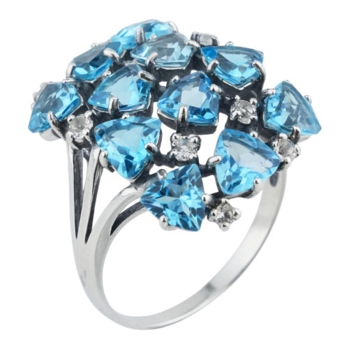 1. Кольца с голубым топазом или аквамарином (верхнее фото)
