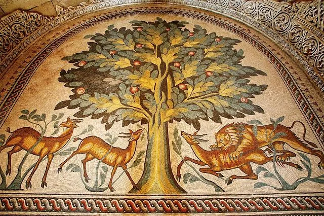 Мозаика "Древо жизни" во дворце Хишама в Иерихоне, на Западном берегу, VIII век н.э.