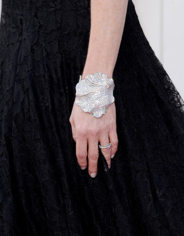 Безусловными фаворитами знаменитостей были бриллианты и белые металлы, в основном, платина. Легко просматриваются ювелирные тенденции этого года: висячие серьги с многочисленными подвесками(chandelier earrings), большие каплевидные и серьги геометрических форм. В этот раз очень мало украшений на шею, однако если таковые и встречались, то размеры были воистину впечатляющие.