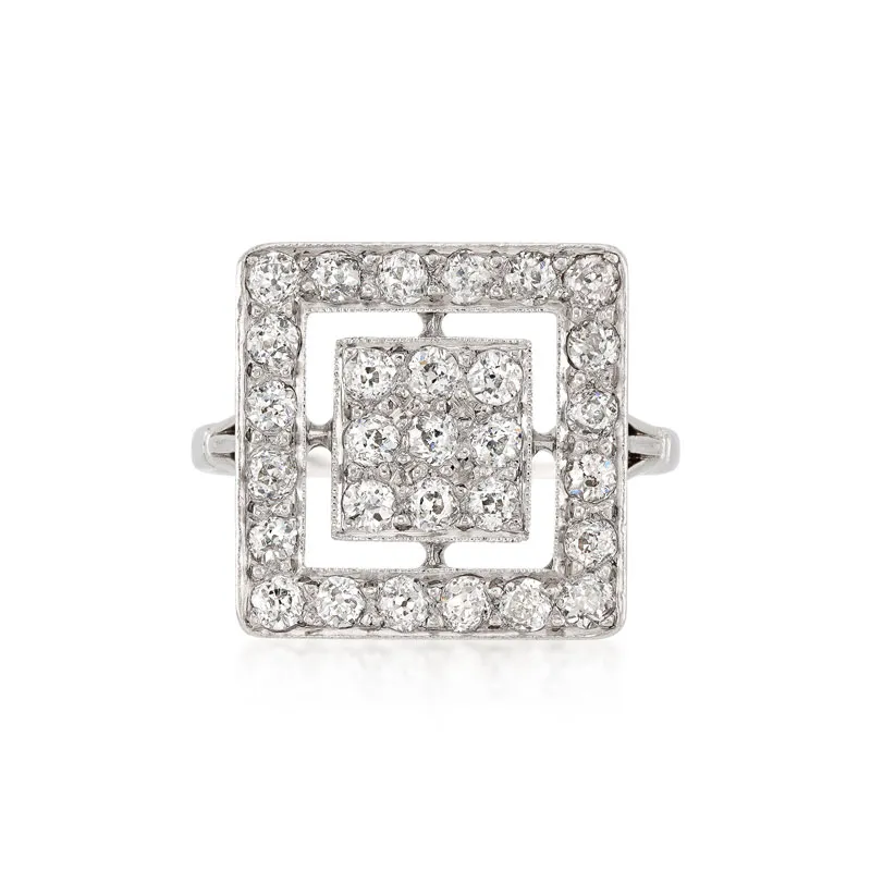 Кольцо из платины с бриллиантами квадратной огранки, бриллиантами из старых рудников