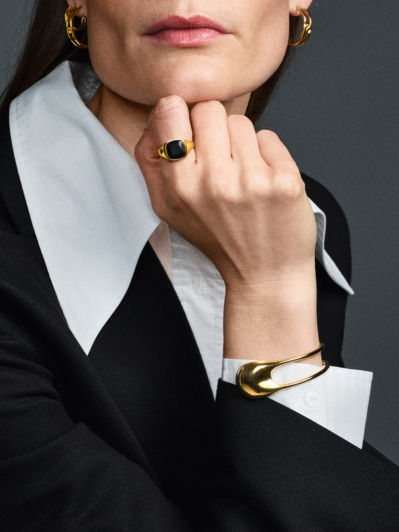 Работы немецкого дизайнера Юлии Муггенбург, вдохновленные стилем Баухаус, включают продолговатые срезы мадагаскарского агата, колышущиеся на золотых полукругах, и эбеновые стержни, подвешенные на золотых цепочках с бриллиантами. "В последнее время я изучаю амбициозную архитектуру 1930-х и 1940-х годов", – говорит она, ссылаясь на пропорции новой штаб-квартиры Fendi в римском Палаццо делла Чивильта Итальяна. Здание кубической формы, облицованное травертином, первоначально заказанное Бенито Муссолини в 1943 году, было отреставрировано архитектором Марко Костанци и отличается сеткой арок, ставшей источником вдохновения для Муггенбург. "Почему принципы архитектуры так хорошо воплощаются в ювелирном деле? Это всего лишь вопрос пропорций", – объясняет Муггенбург. "Монументальная архитектура всегда начинается с уменьшенных моделей. Разница в том, что моя ювелирная модель – это также и конечный результат. Нет необходимости увеличивать масштаб". Важно отметить, что Муггенбург подчеркивает необходимость лишь намекать на архитектурные детали, чтобы избежать перегруженности дизайна.