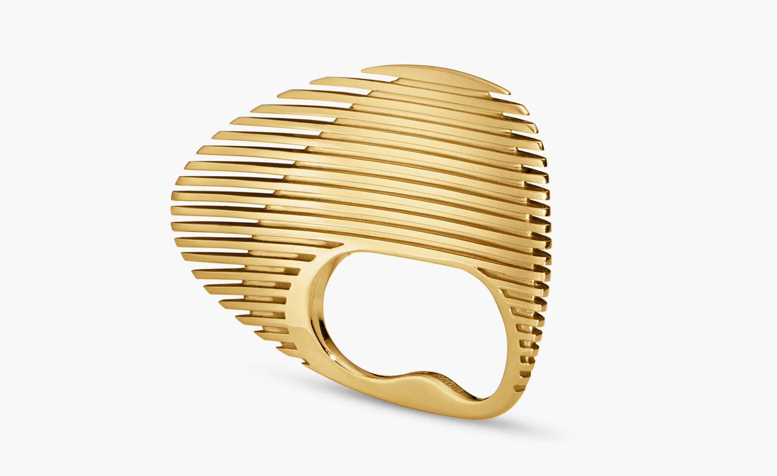 Кольцо GEORG JENSEN & ZAHA HADID из серебра, выполненное в стиле комплекса зданий, спроектированных Захой Хадид в Ванцзине, Пекин.