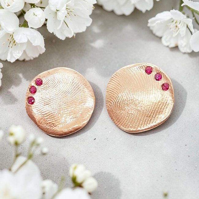 Изделия отличаются металлическими поверхностями, на которых отпечаток приобретает неповторимый вид. Это не просто декор, а органичная деталь, определяющая суть каждого украшения.
