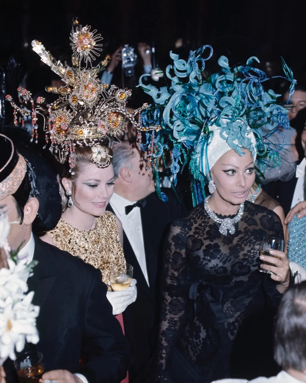 В 1969 году Софи Лорен посетила блистательный костюмированный бал «Ужин голов» , устроенный Грейс Келли, принцессой Монако, по случаю открытия Зала Америк в недавно отреставрированном казино Монте-Карло. Итальянская актриса придерживалась броского дресс-кода, надев прозрачное кружевное чёрное платье и экстравагантный, возвышающийся синий головной убор. Её бриллианты под стать этому образу. Лорен надела висячие бриллиантовые серьги, гигантское кольцо с грушевидным бриллиантом и колье с завязанными на узел бриллиантами.