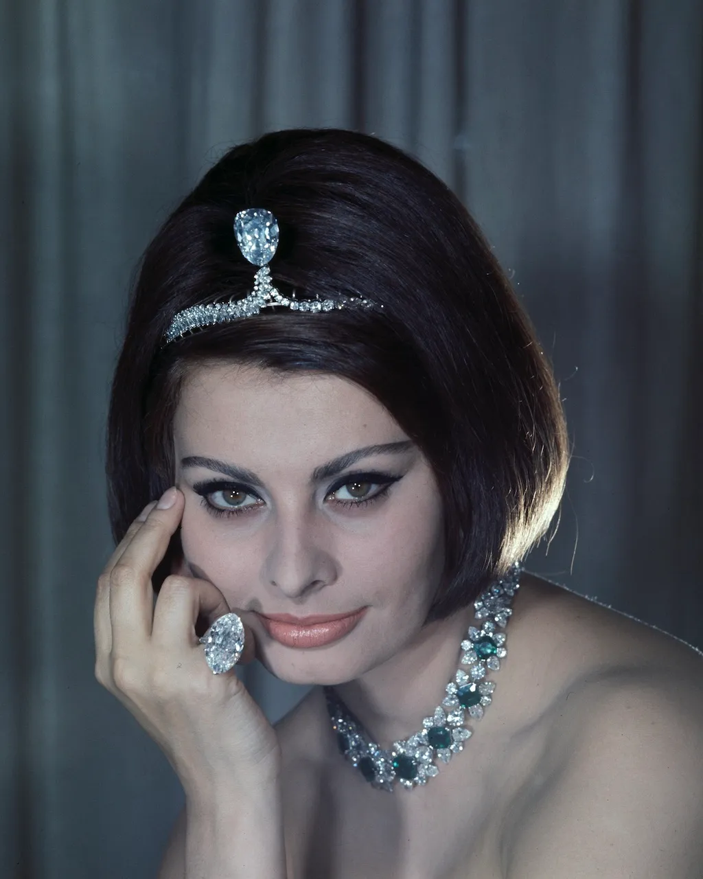В 1962 году Софи Лорен позировала в огромных бриллиантах из коллекции короля Непала, снятых фотографом Франсуа Пажем. На актрисе была сверкающая тиара с античным бриллиантом грушевидной огранки весом почти 57 карат. Лорен также щеголяла в ожерелье с цветочным узором из бриллиантов и изумрудов, которое, как сообщается, состояло из 83 бриллиантов общим весом 150,49 карата. Образ дополняли серьги с бриллиантами и изумрудами, а также впечатляющее кольцо с бриллиантом огранки «мовал» весом 49,64 карата.
