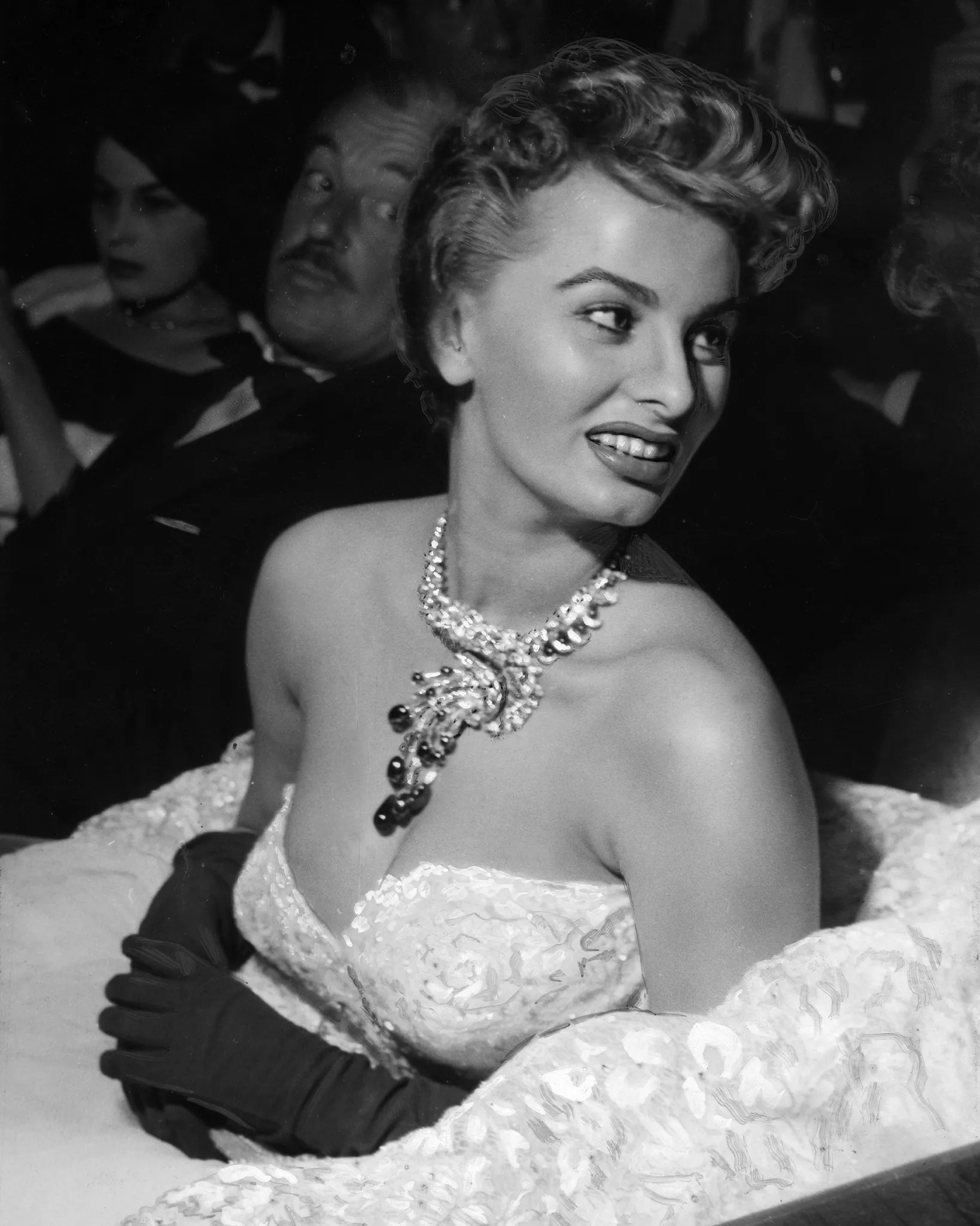 Во время Каннского кинофестиваля 1955 года итальянская актриса прибыла на приём в Салон послов в вечер открытия в белом кружевном бальном платье от итальянского «портного звёзд» Эмилио Шуберта. К наряду она добавила элегантные оперные перчатки и эффектное колье из натуральных бриллиантов с подвесками из изумрудов.