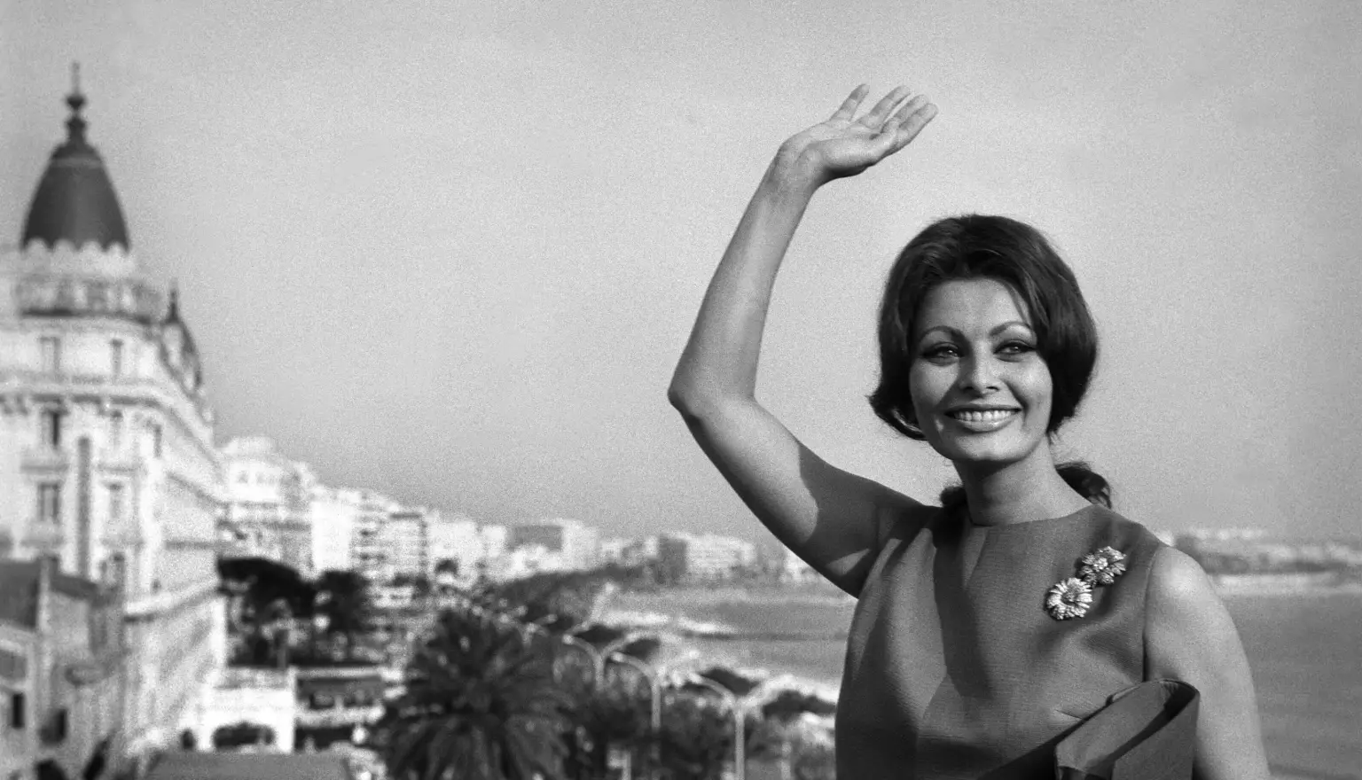 Будучи председателем жюри Каннского кинофестиваля 1966 года, Софи Лорен очаровала всех на набережной Круазетт в ярком платье-футляре с двумя сверкающими брошами в виде цветов, прикрепленными к ее плечу.