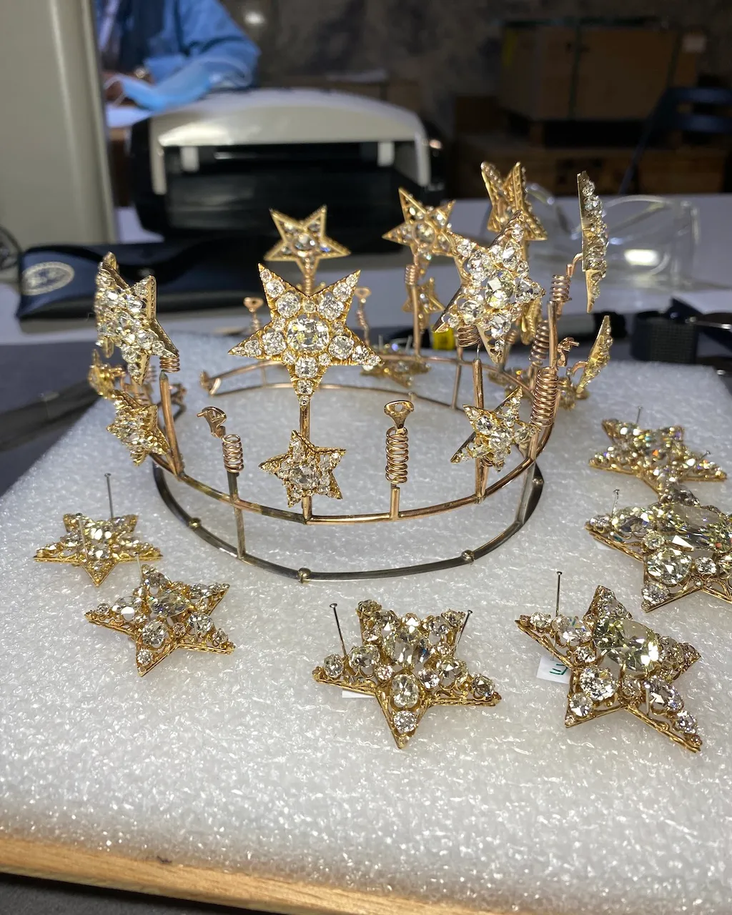 Эмили Стоерер из Музея изящных искусств Бостона описывает комплект диадем en tremblant как «очень современный». Диадема звезд, созданная по заказу королевы-консорта Марии Пии Савойской (предоставлено Королевским музеем сокровищ).