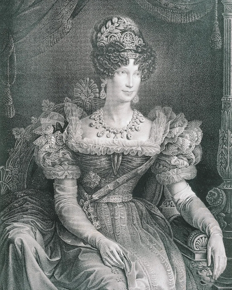 Мария Пиа стала королевой-консортом после замужества с королем Португалии Луишем I в 1862 году и быстро зарекомендовала себя как одна из величайших эстетов монархии. Известная своим безупречным стилем, она посвятила себя не только созданию изысканных ювелирных украшений на заказ, но и модернизации и переоформлению дворца Ажуда, превратив его в витрину космополитической роскоши XIX века. Среди ее самых известных работ — Диадема звезд, созданная португальским придворным ювелиром Эстевао де Соуза, вместе с соответствующим ожерельем, оба украшены сверкающими бразильскими бриллиантами. Эти украшенные звездами изделия демонстрируют талант Марии Пиа к смелым, небесным мотивам и ее стремление поднять португальское мастерство до уровня лучших королевских дворов Европы.
