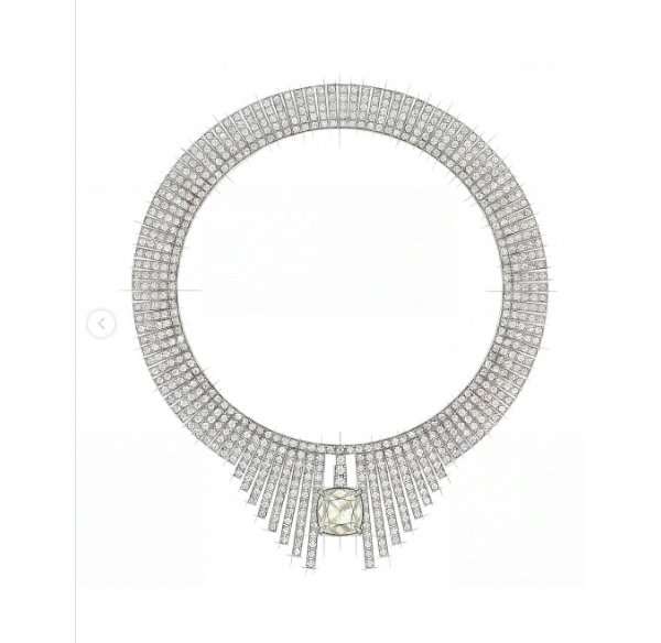 Это сверкающее колье, выполненное на заказ, украшал 16-каратный бриллиант фантазийного зеленого цвета, окруженный 49,85 каратами белых бриллиантов из коллекции Sofia. Образ Хадсон дополнили кольцо Garatti с 15-каратным бриллиантом фантазийного темно-зеленого цвета в обрамлении сияющих белых бриллиантов, а также серьги, изготовленные на заказ, с двумя 5,01-каратными бриллиантами фантазийного зеленого цвета из коллекции Fancy Green Diamond.