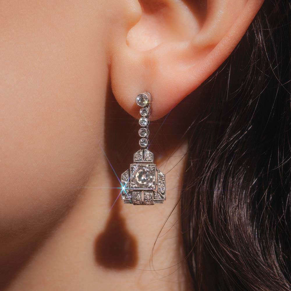 Серьги-подвески в стиле ар-деко с бриллиантами из платины, ок. 1930 г.
