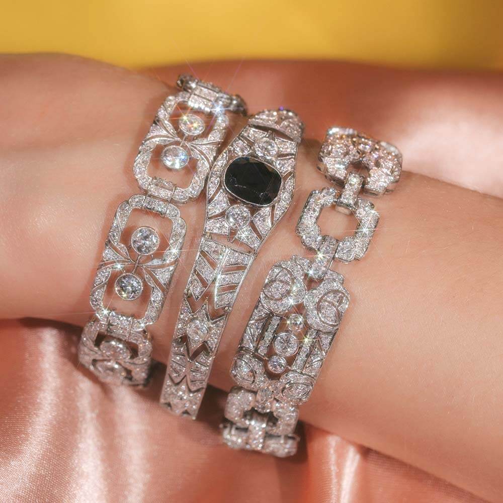 Фактически, едва ли какой-либо гламурный студийный портрет актрисы эпохи ар-деко обходится без множества бриллиантовых браслетов – запястье, которое обычно было видно, когда исполнительница главной роли склоняла лицо на ладонь, стало излюбленным местом для обильных украшений. В 1930 году Норма Ширер даже получила «Оскар» за фильм «Разведенка», надев на запястье не менее трех браслетов.