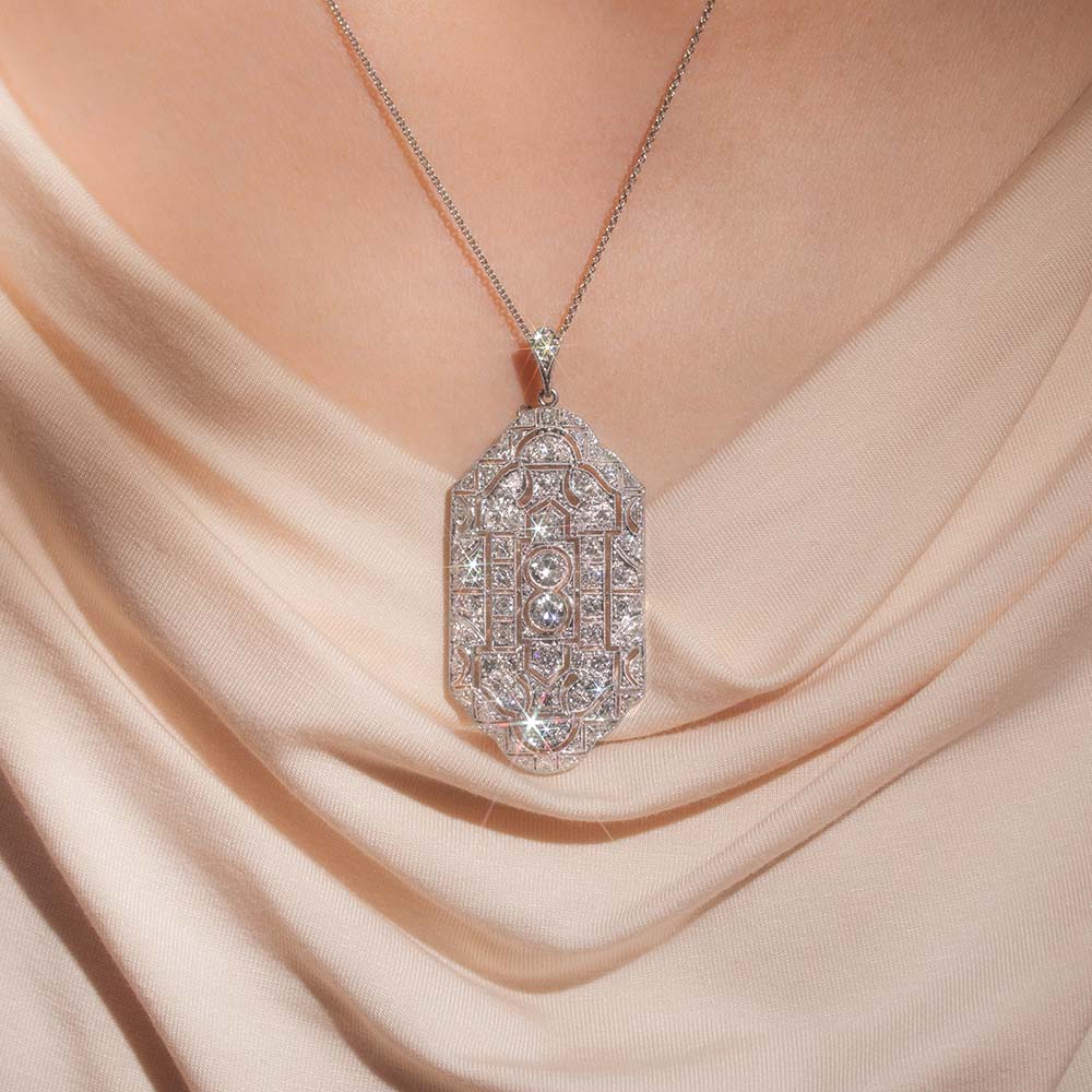 Крупный кулон в стиле деко с бриллиантами в оправе из цельной платины, около 1930 г.