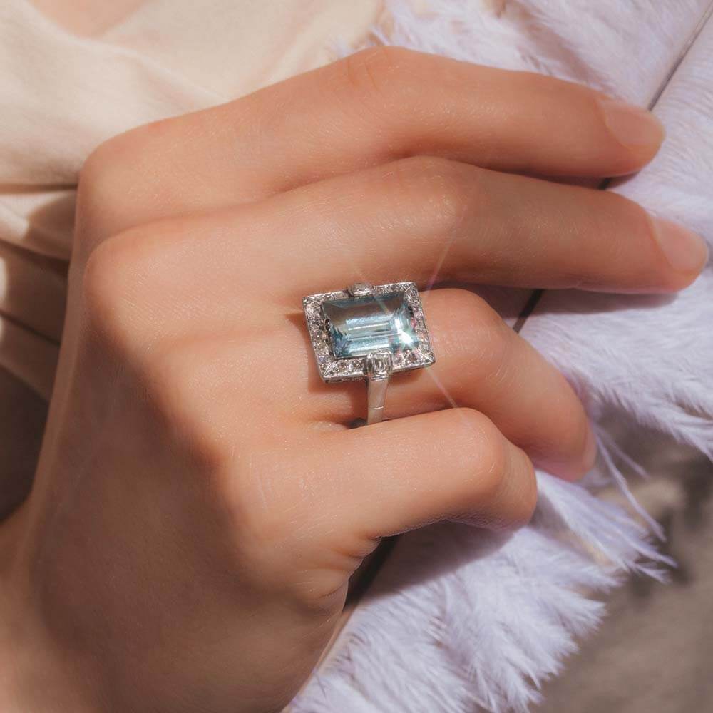 Кольцо с аквамарином и бриллиантами, около 1930 г.