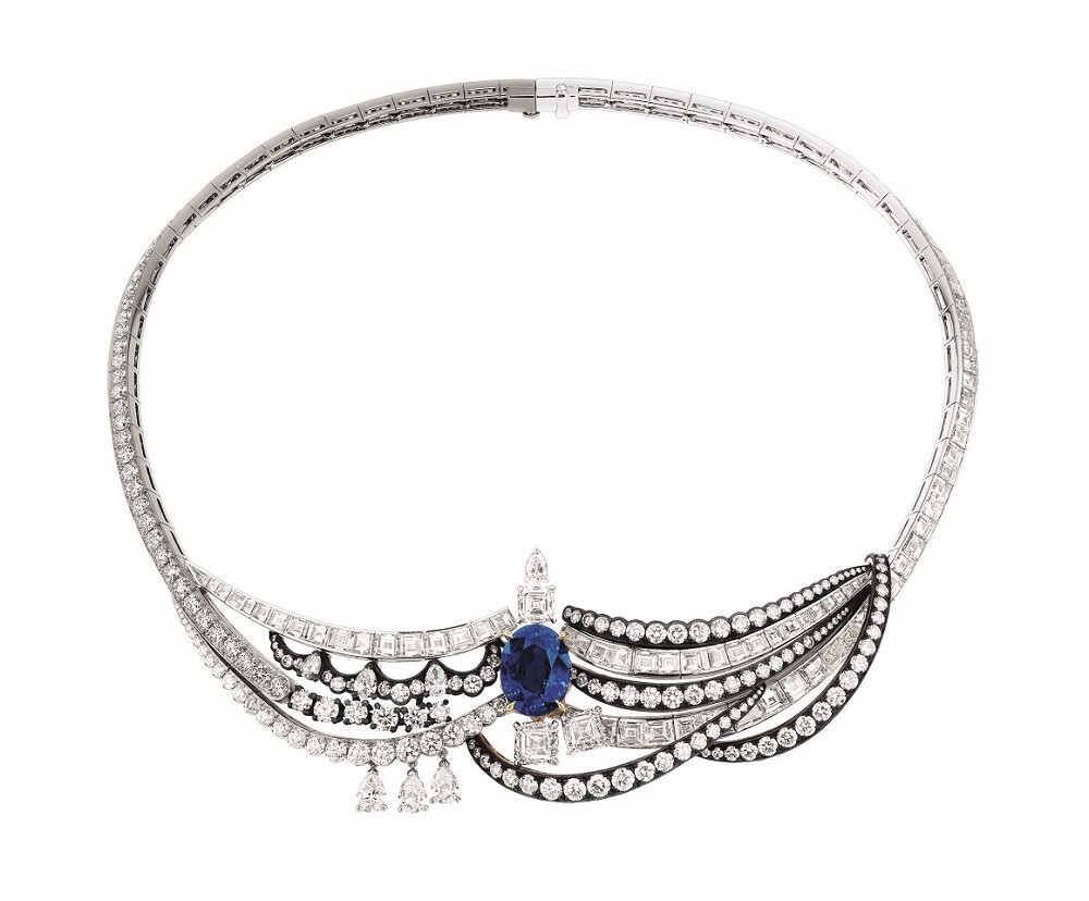 Колье Chambre du Roi. Белое, розовое и желтое золото, серебро, бриллианты и сапфиры