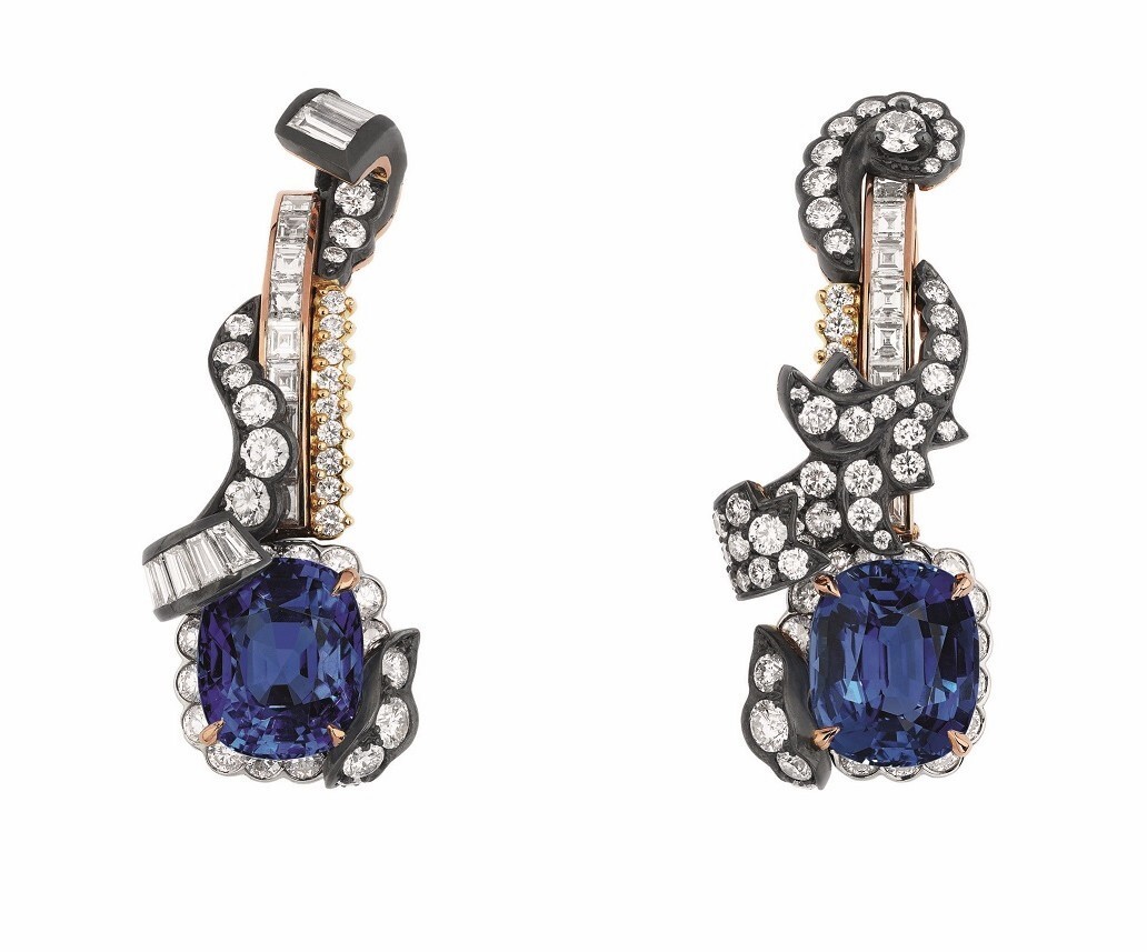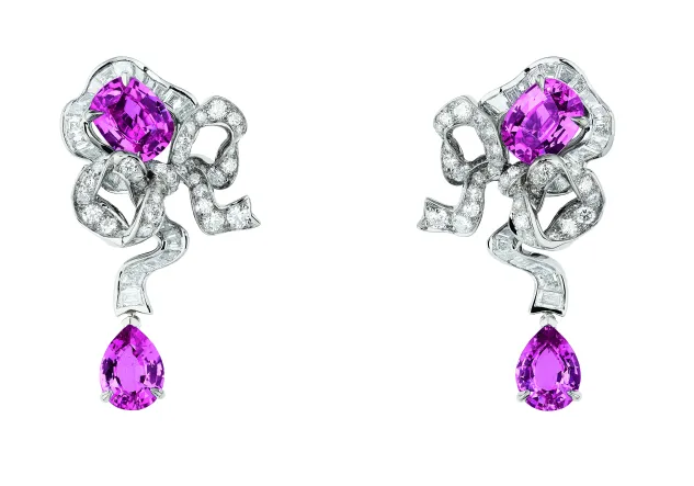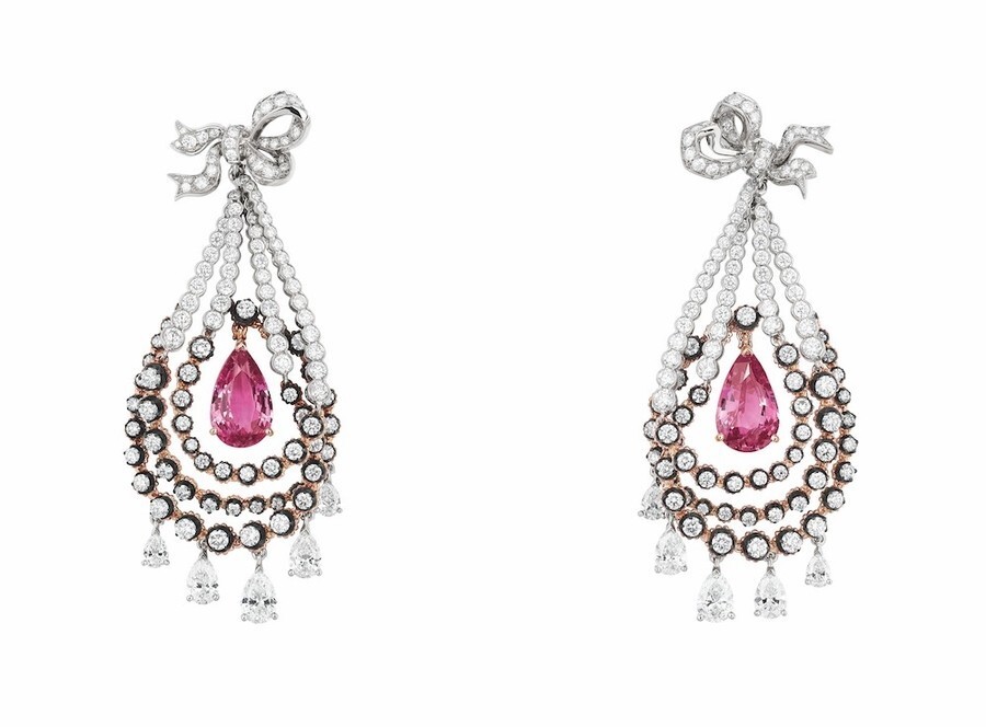 Серьги Fontange Saphir Rose. Белое золото, бриллианты и розовые сапфиры.