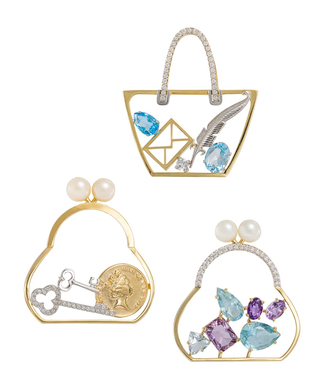 Старинные ювелирные изделия, изображающие предметы повседневного обихода в миниатюре, последняя треть XIX века.