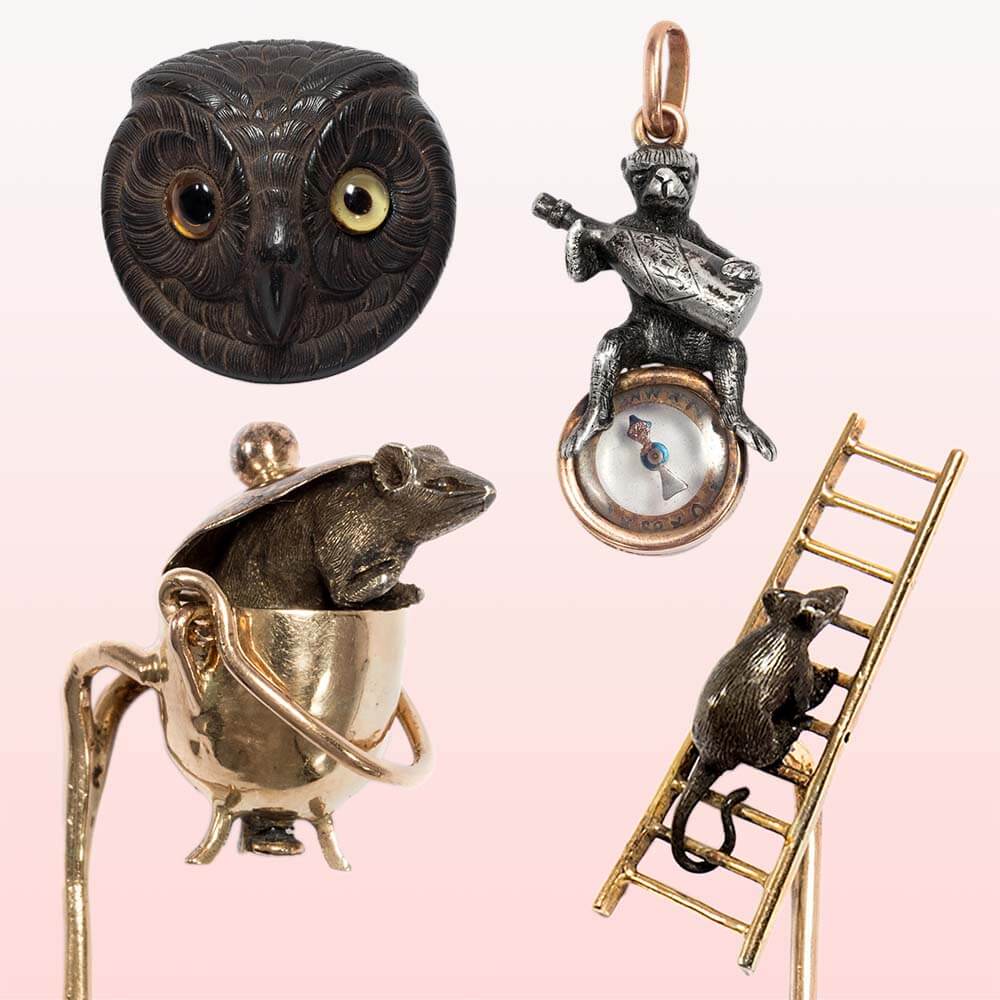 Украшения, не предназначенные для охоты, часто имели юмористический подтекст. Браслеты, кольца и булавки с миниатюрными, детально проработанными мышками были популяризированы британской компанией Thornhill's в 1880-х годах. Затем появились подвески в виде маленьких поросят, а также обезьянки, восседающие на бутылках шампанского.