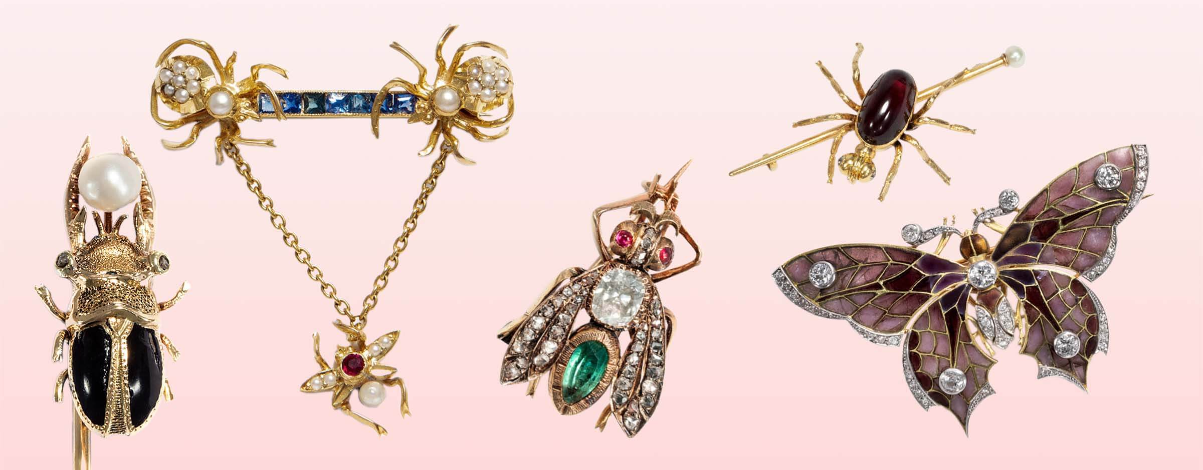 Мода на украшения с насекомыми охватила Европу в последней трети XIX века. Неудивительно, что самым популярным примером стала бабочка: её крылья идеально подходят для богатой инкрустации драгоценными камнями, и бабочки, украшенные драгоценными камнями, считаются одними из самых дорогих образцов старинных украшений с насекомыми.