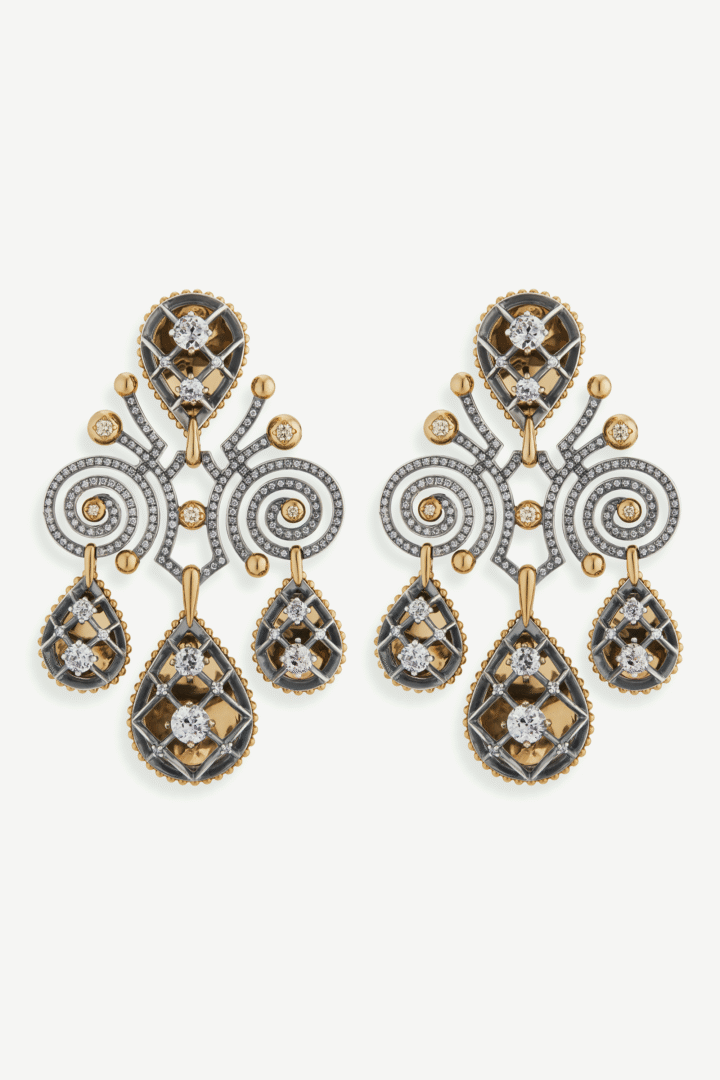 В ювелирном деле это серьги, состоящие из набора бриллиантов или драгоценных камней, часто трёх подвесок или трёх цепочек (иногда пяти), расположенных вокруг центрального камня. Это новшество XVII века оставалось модным на протяжении двух столетий.