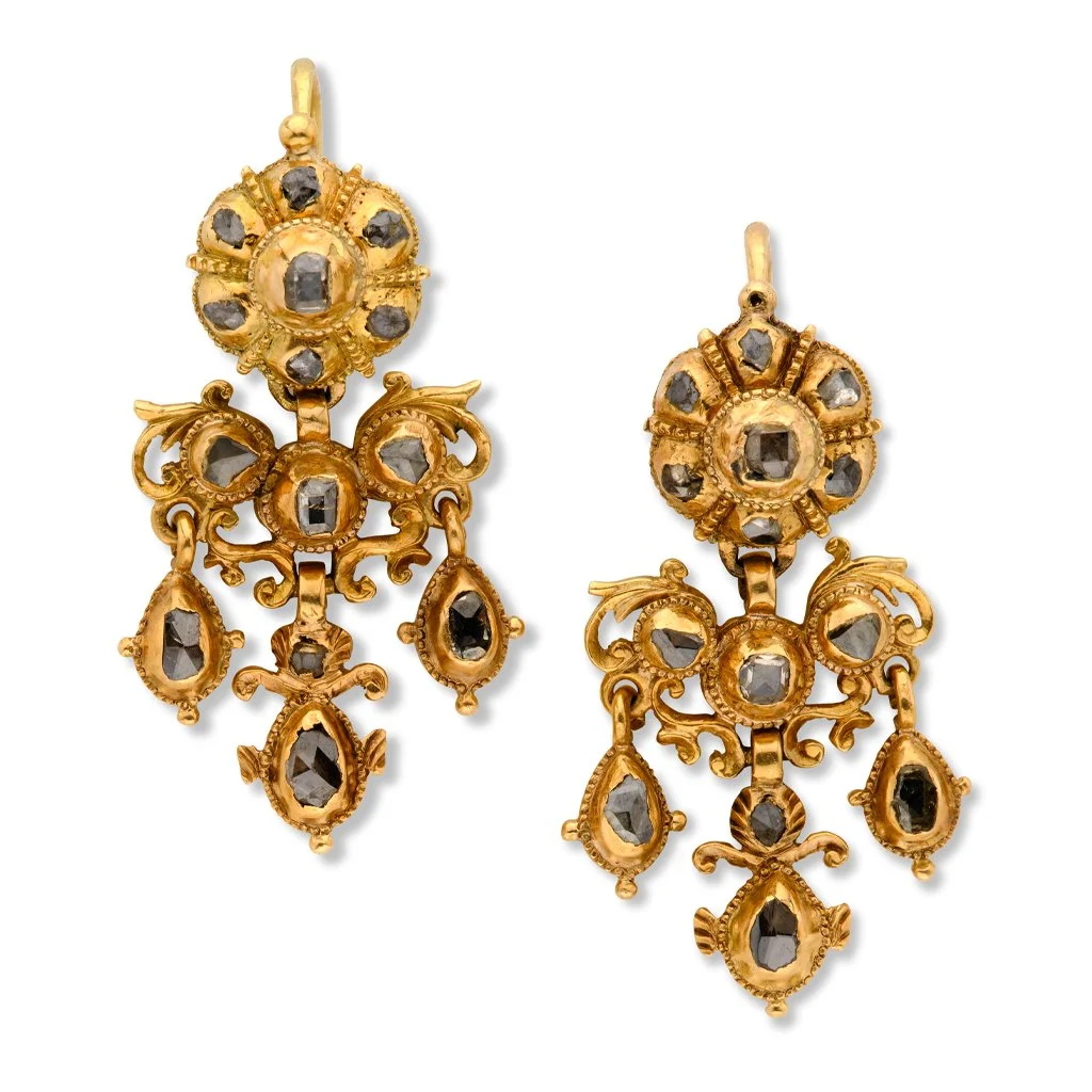 Надо сказать, что XVIII век стал веком триумфа ювелирного искусства. Во-первых, это был век процветания, поэтому украшения носили все состоятельные люди, а не только знать. Более того, открытие рудников Голконды около 1726 года принесло с собой изобилие алмазов. На ушах самых богатых и элегантных женщин сверкали жирандоли, инкрустированные бриллиантами.
