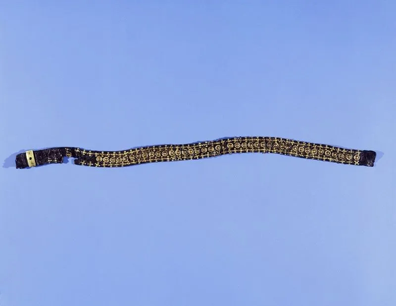 Они использовались в качестве аксессуаров к одежде и были самых разных форм и стилей: от кругов и прямоугольников до животных и цветов. В XIV–XV веках такие украшения носили все – от князей до крестьян. В Лондонской коллекции есть пример пояса с сохранившимися декоративными креплениями из медного сплава или заклепками:
