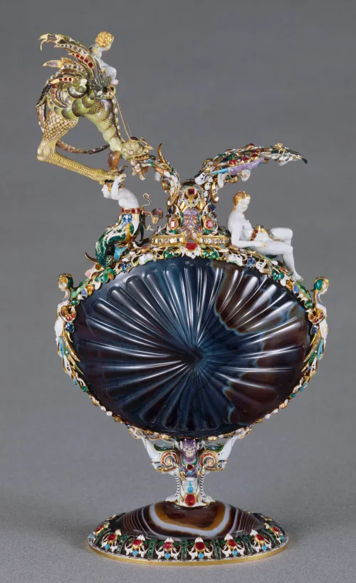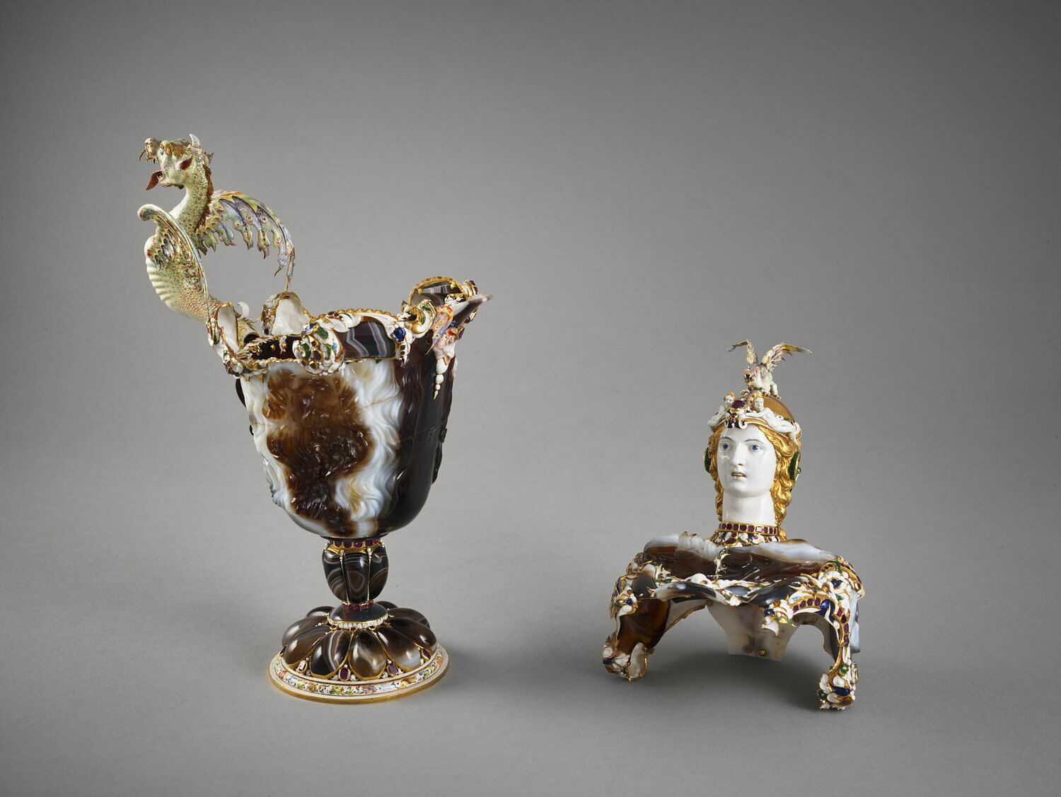 Пьер Делабар, Кувшин (фрагмент), ок. 1630–1635 гг., эмаль, золото, бриллиант, изумруд, рубин, опал, сердолик, сердолик, 26,1 x 13,4 x 6,9 см. Париж: Лувр. Фото © RMN-Grand Palais/Art Resource, Нью-Йорк.