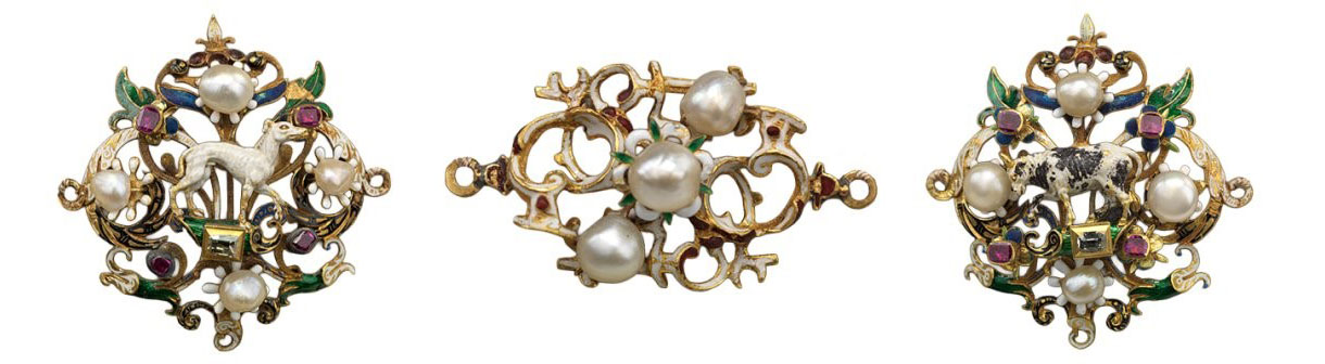 Нагрудное украшение , ок. 1620–1630 гг., эмалированное золото с бриллиантами, 12,4 x 7,4 x 3,0 см. Лондон: Музей Виктории и Альберта. Фото © Музей Виктории и Альберта, Лондон.