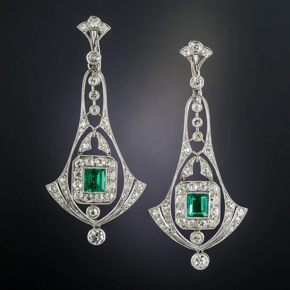 Популярность горного хрусталя в эпоху ар-деко обусловлена двумя ключевыми факторами. Во-первых, вдохновлённые новыми формами и композициями, предложенными кубистами, фовистами и дадаистами, ювелиры оценили прозрачный кварц за его способность создавать новые измерения негативного и позитивного пространства. Во-вторых, популярность горного хрусталя резко возросла после открытия в 1924 году крупных месторождений платины на рифе Меренского в Южной Африке. В отличие от серебра, преобладающего белого металла, использовавшегося в ювелирном деле на протяжении многих столетий, платина не тускнеет и не темнеет со временем, что сыграло решающую роль в популяризации индустриального "белого на белом" стиля того периода. Огромные запасы платины, обнаруженные в этом южноафриканском месторождении, произвели революцию в ювелирном деле. Ювелиры получили возможность использовать этот исключительно прочный и пластичный материал для создания новых форм и объёмов в своих изделиях, а также оценить его способность "исчезать". При создании секций из горного хрусталя для этих серёг ювелир закрепил бриллианты в платиновой оправе, создав иллюзию парящих в воздухе драгоценных камней. Использование жадеита в этих серьгах также отражает увлечение китайской культурой в эпоху ар-деко.