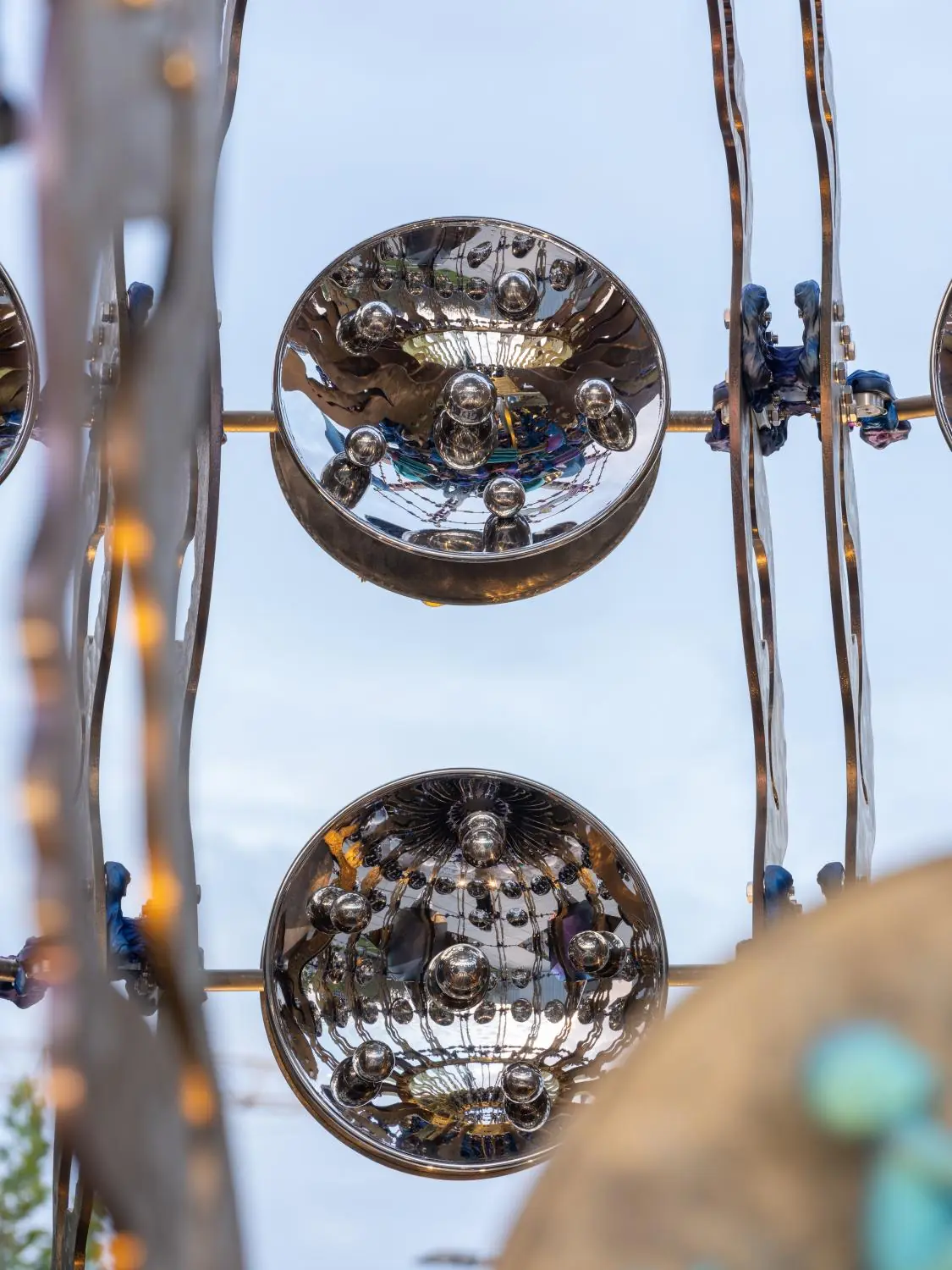 Состоящая из более чем 5500 титановых деталей, 1500 алюминиевых компонентов и почти 20 000 стальных винтов, она содержит 725 шестеренок и 922 человеческие фигуры, переплетающиеся, как судьба, свидетельствующие о бесконечности времени. Когда в нее проникает свет, материалы и дух словно дышат как одно целое. Это сосуд, который ничего не вмещает, но в то же время содержит всё.