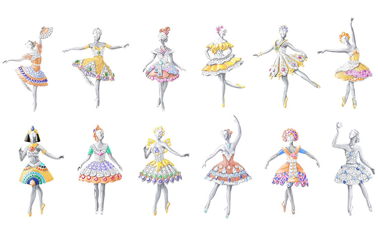 Дом Van Cleef & Arpels представил эскизы своей новой коллекции брошей «Ballet Précieux». В этом сезоне бренд создаст 12 украшений, вдохновленных культовыми позами из 11 знаменитых балетов. От «Щелкунчика» и «Лесной феи» до «Клеопатры» – каждая брошь является данью уважения классическому балетному искусству, охватывая разнообразие жанров и стилей.