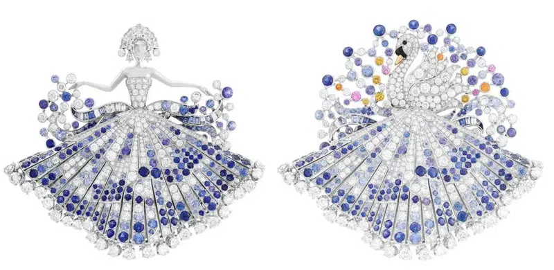 Венчает этот диалог искусств творение из коллекции высокого ювелирного искусства Van Cleef & Arpels 2017 года Le Secret — брошь «Métamorphose du Cygne» («Царевна Лебедь»). Вдохновлённая Cказкой о царе Салтане А. С. Пушкина, универсальная брошь представляет собой балерину в платье из сапфиров, спессартитов и бриллиантов. Поворотом верхней части фигурка трансформируется в изящного лебедя, плывущего по «озеру» из бриллиантов и цветных сапфиров.