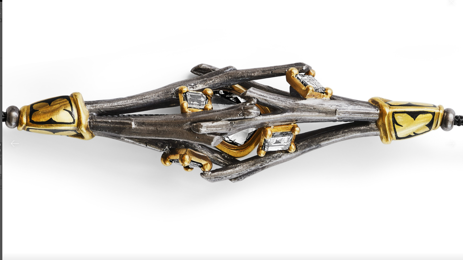 Материалы: Основной материал — белое золото, оттенённое чёрным родием. В роли «препятствий» выступают бриллианты, закреплённые в оправах из жёлтого золота.