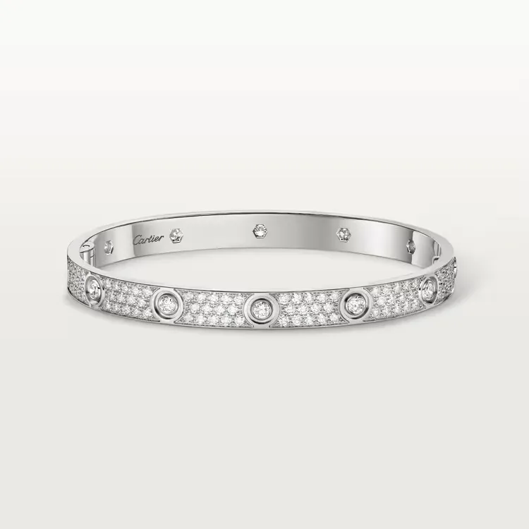 Если «Троица» отражает эстетику Cartier начала XX века, то браслет Love олицетворяет его современную эпоху. Разработанный в Нью-Йорке в 1969 году ювелиром Альдо Чипулло (Aldo Cipullo), овальный браслет фиксируется функциональными винтами, для затягивания которых требуется специальная отвёртка. Концепция была революционной: ювелирное изделие, предназначенное для постоянного ношения на теле, стало символом неразрывной связи. Лаконичные линии и индустриальные отсылки ознаменовали сознательный отход от канонов высокого ювелирного искусства в сторону минимализма и концептуальности. Браслет быстро завоевал популярность среди артистической элиты и пар, привлечённых его мощной символикой. Сегодня браслет Love часто интегрируется в многослойные образы, сочетаясь с часами и другими браслетами, что трансформирует его восприятие от формального к личностному. Спустя десятилетия он остаётся одним из самых узнаваемых дизайнов Дома.