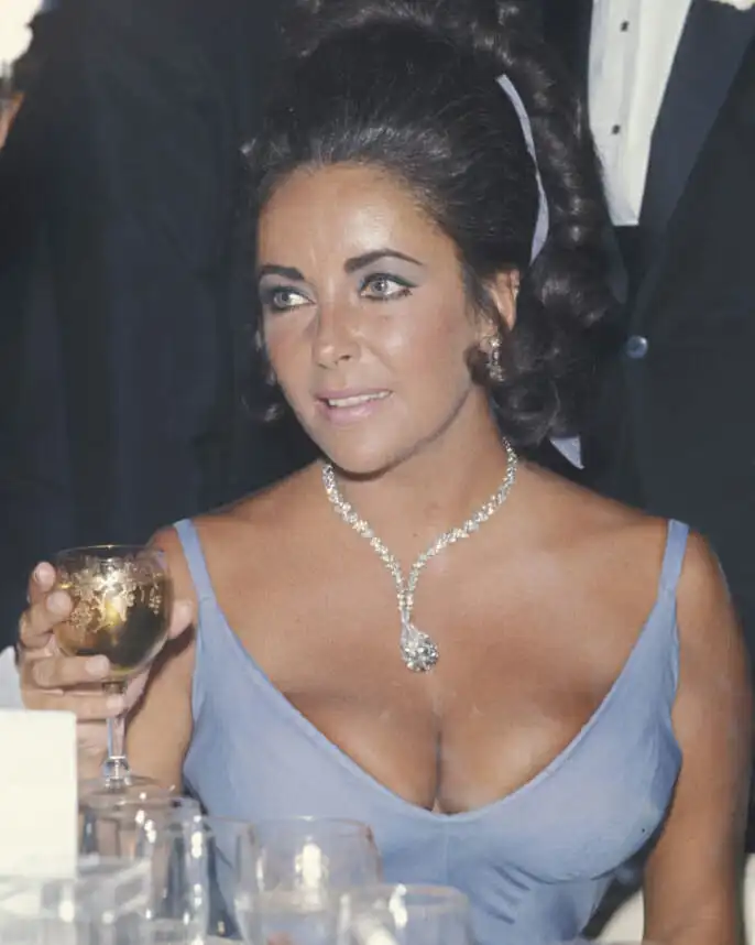 Элизабет Тейлор в колье с бриллиантом Тейлор-Бертон на балу в честь вручения премии «Оскар» в 1970 году в отеле «Беверли Хилтон», Калифорния. (Getty Images)