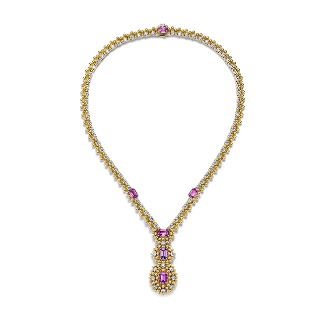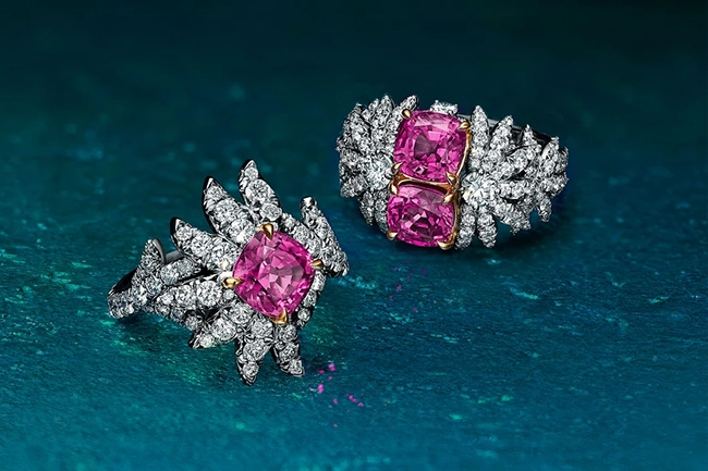 Кольца Tiffany & Co. Blue Book Hidden Garden из платины и 18-каратного желтого золота, инкрустированные розовыми сапфирами и бриллиантами