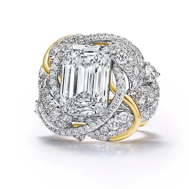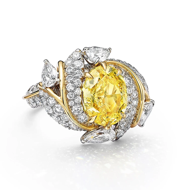 Кольцо Tiffany & Co. Blue Book Hidden Garden Bee из платины и 18-каратного желтого золота с бриллиантом овальной огранки типа IIa, цвет D, весом 10,17 карата, безупречной чистоты внутри, и бриллиантовыми вставками.