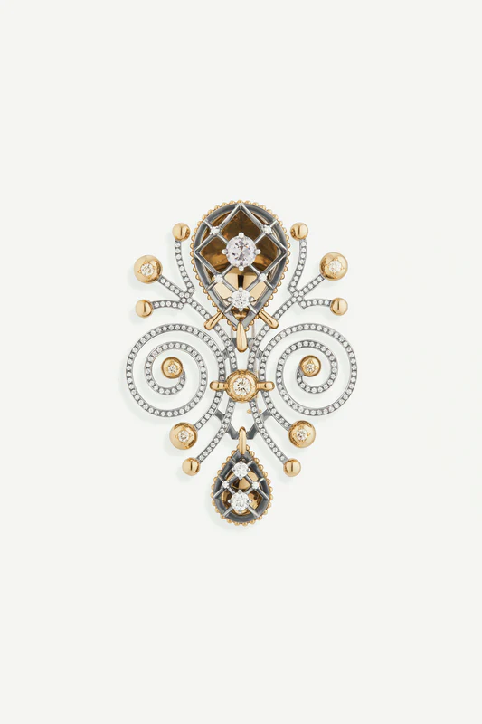 Из салонов в сады – появились серьги-люстры, броши с геральдическими лилиями, сетчатые манжеты и продолговатые кольца.