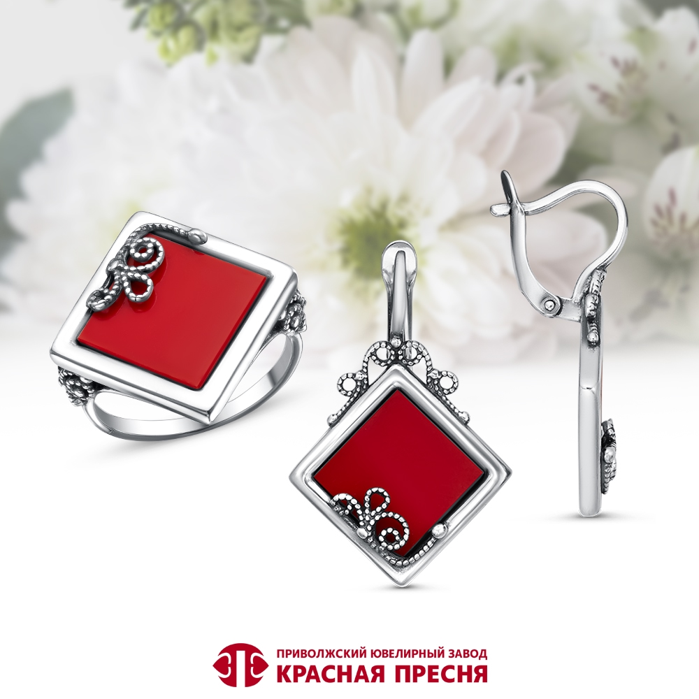 Артикул 23317084Кр. Серебро 925, иск. коралл; оксидирование