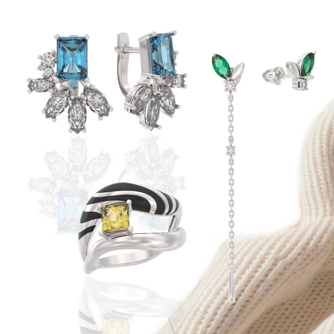Для тех, кто предпочитает более насыщенные цветовые решения, коллекция включает изделия с использованием ярких цветных фианититов. Искрящиеся переливы фианитов цвета сапфира, изумруда и рубина добавляют аксессуарам динамизм и актуальность, делая их идеальными компаньонами для вечерних образов или стильного акцентом в повседневном гардеробе.