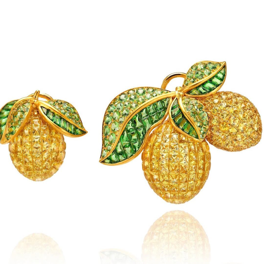 Серьги из лимонно-желтого золота от Lydia Courteille с желтыми сапфирами и цаворитами
