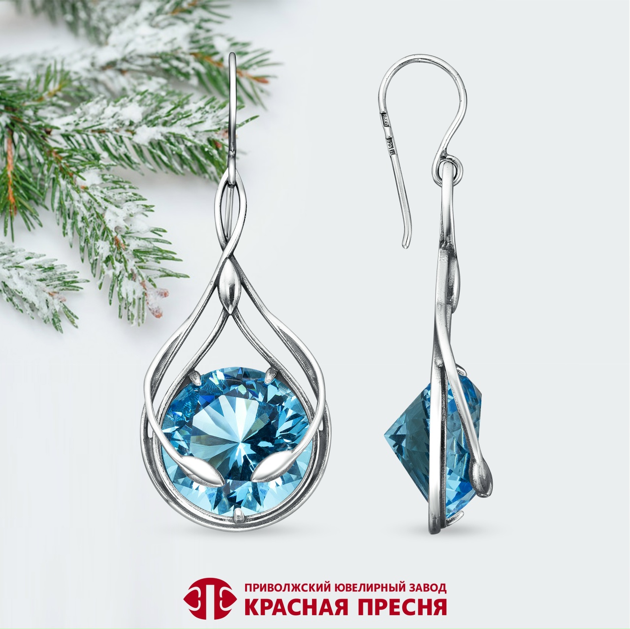 Оригинальные серьги из серебра 925 пробы со вставкой "топаз искусственный" небесно-голубого цвета, воплощение элегантности и утонченного вкуса.