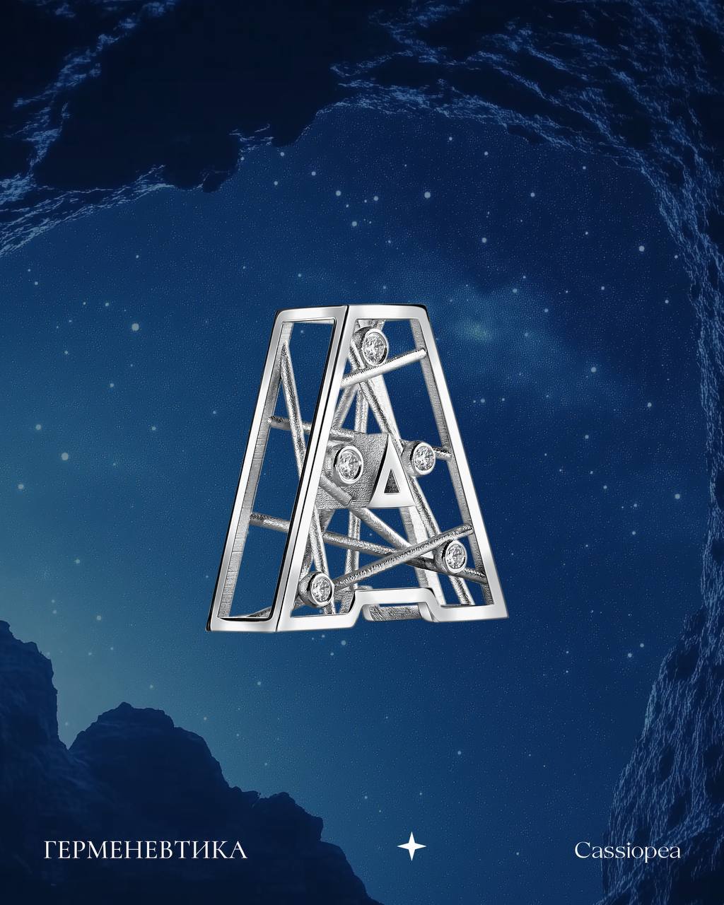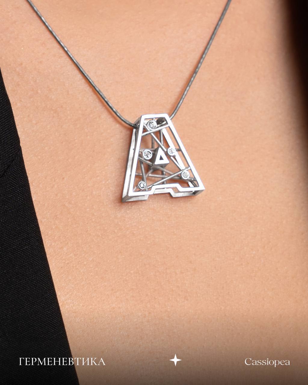 Буква A в коллекции «Герменевтика» - о том же. О моменте, когда что-то только начинается. О внутреннем решении. О новой главе. Это не просто первая буква алфавита. Это символ старта, выбора, начала, за которым следует всё остальное.