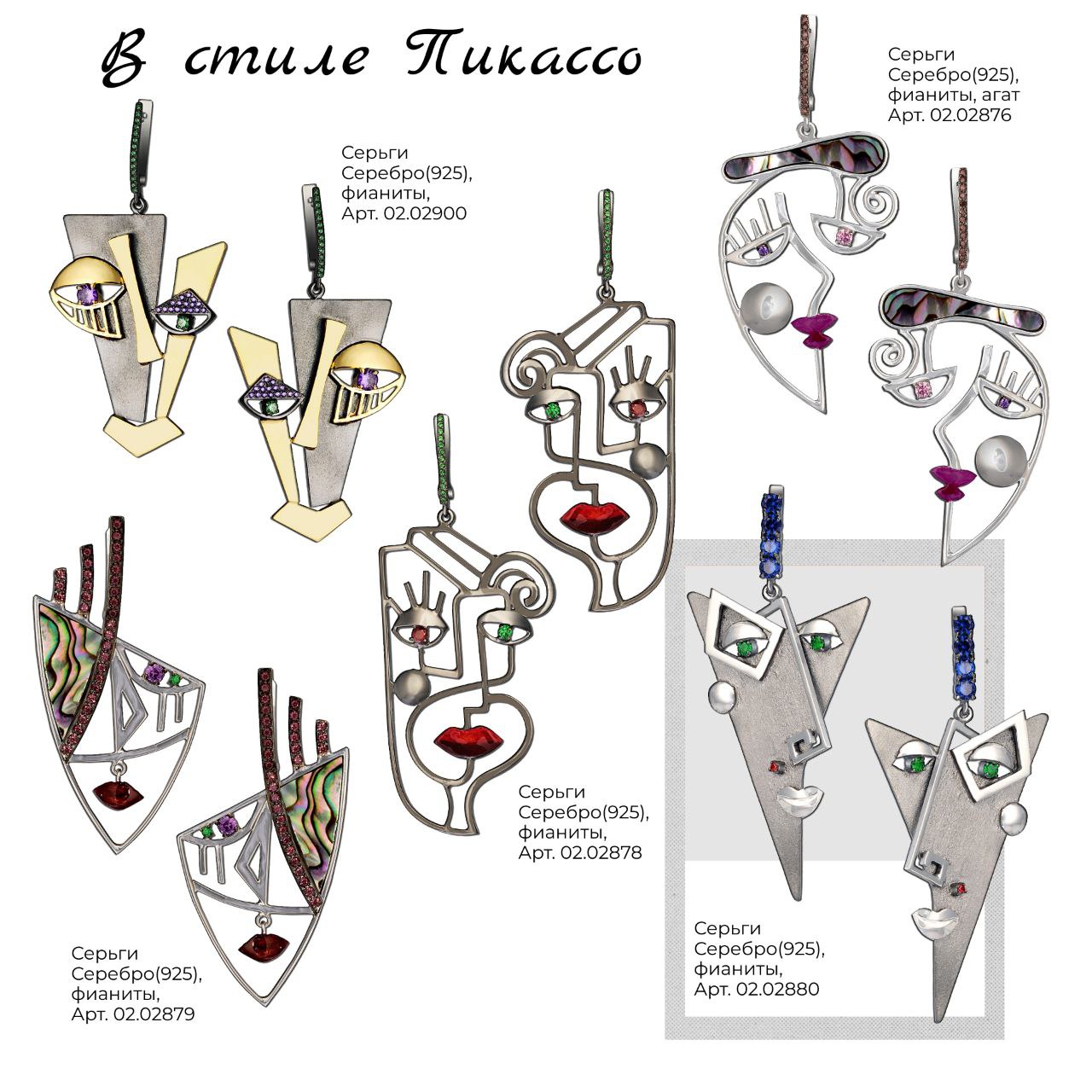 Серьги в стиле «Лица Пикассо» — это маленькие абстрактные портреты, в которых линии и формы нарочно нарушают симметрию. Такие серьги выглядят как миниатюрные арт‑объекты: графичные контуры, неровные силуэты, иногда контраст металла и эмали. Они не про классику, а про характер и смелость — аксессуар, который сразу превращает образ в творческий и запоминающийся.