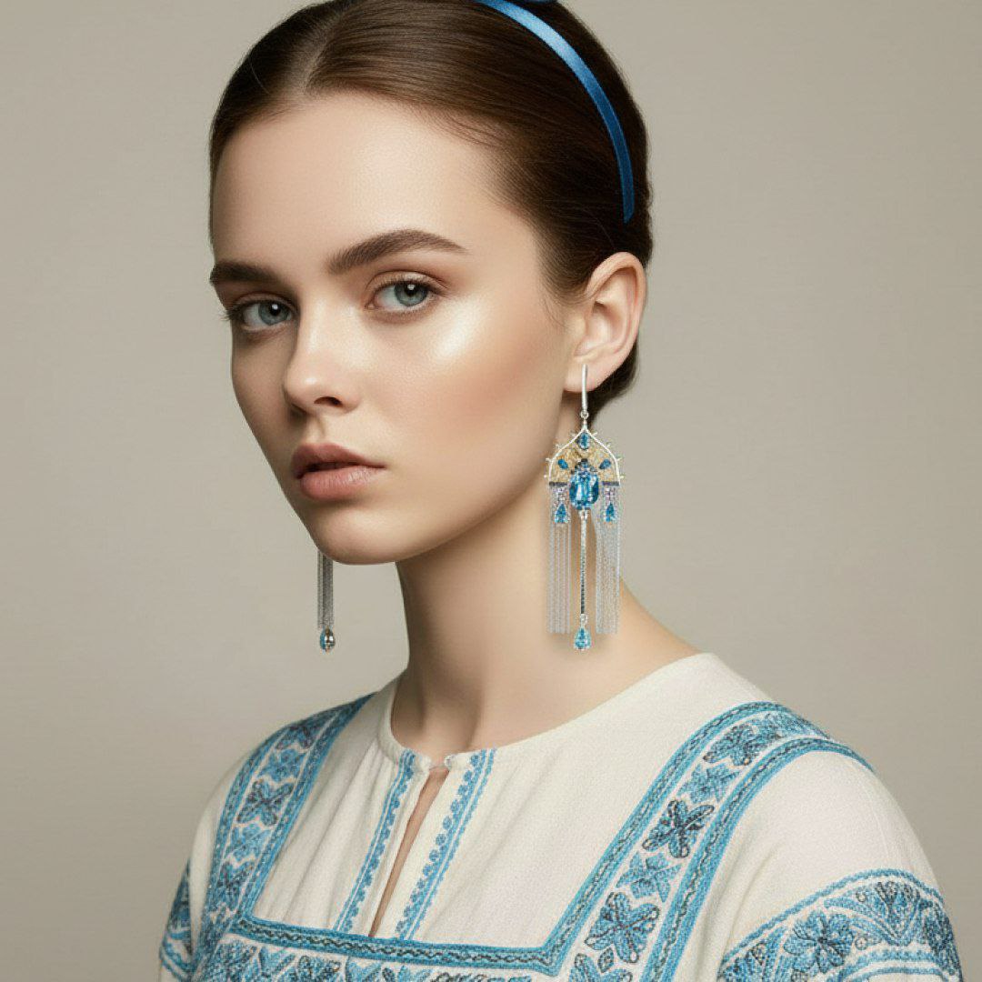Эти серьги вдохновлены традиционными русскими мотивами, но представлены в современном, утонченном исполнении. Они словно вобрали в себя красоту народных узоров, изящество русских танцев и сияние русской души.