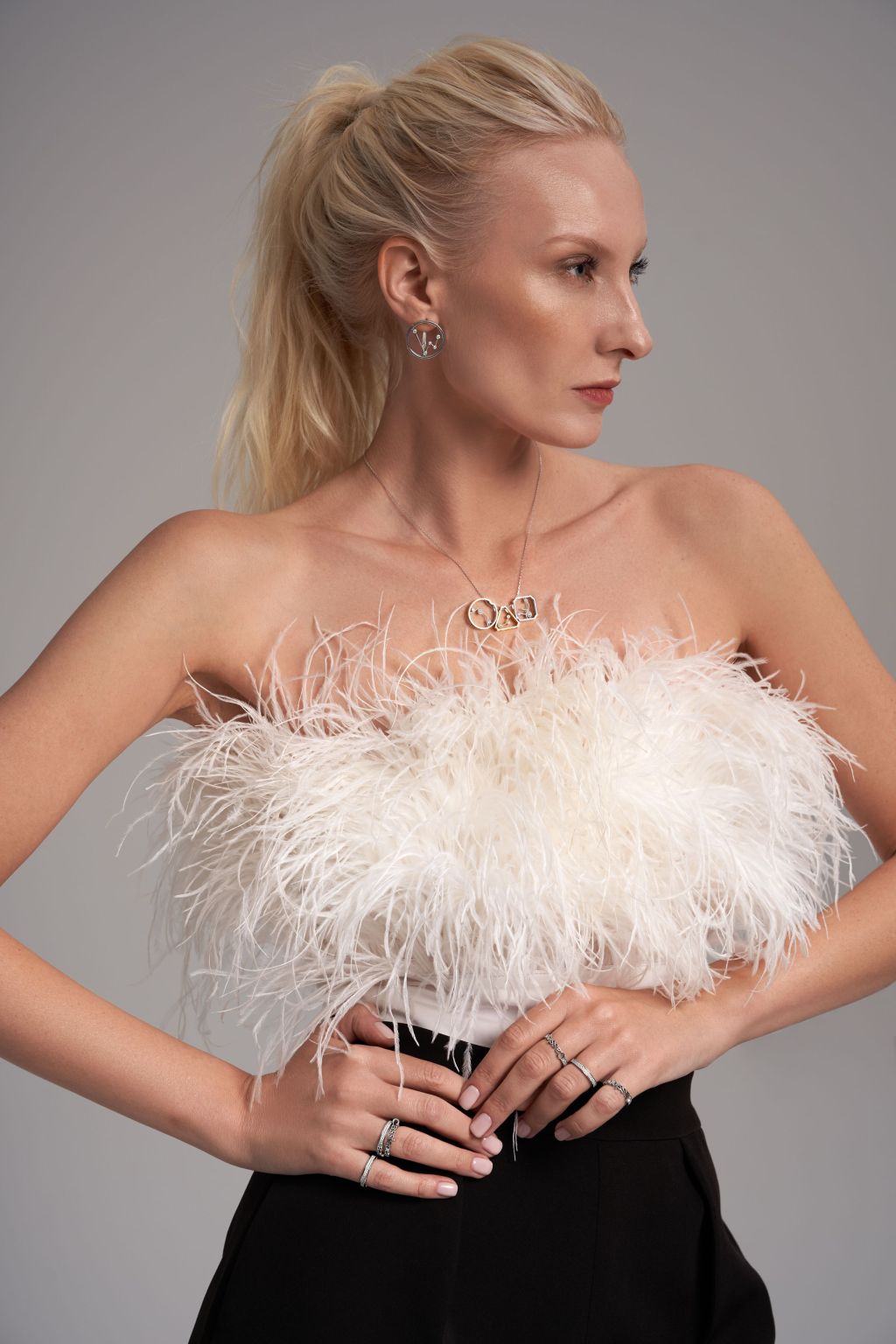 Особого внимания заслуживает материальное воплощение идеи дуальности. Каждое изделие существует в двух версиях: в теплом сиянии желтого золота и в строгом блеске белого.