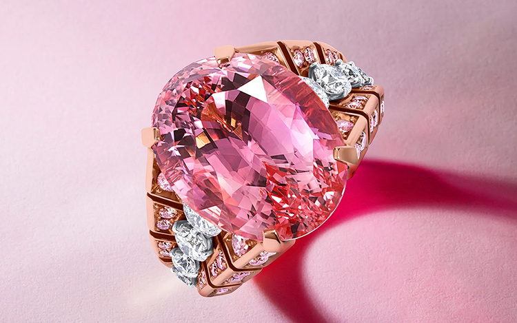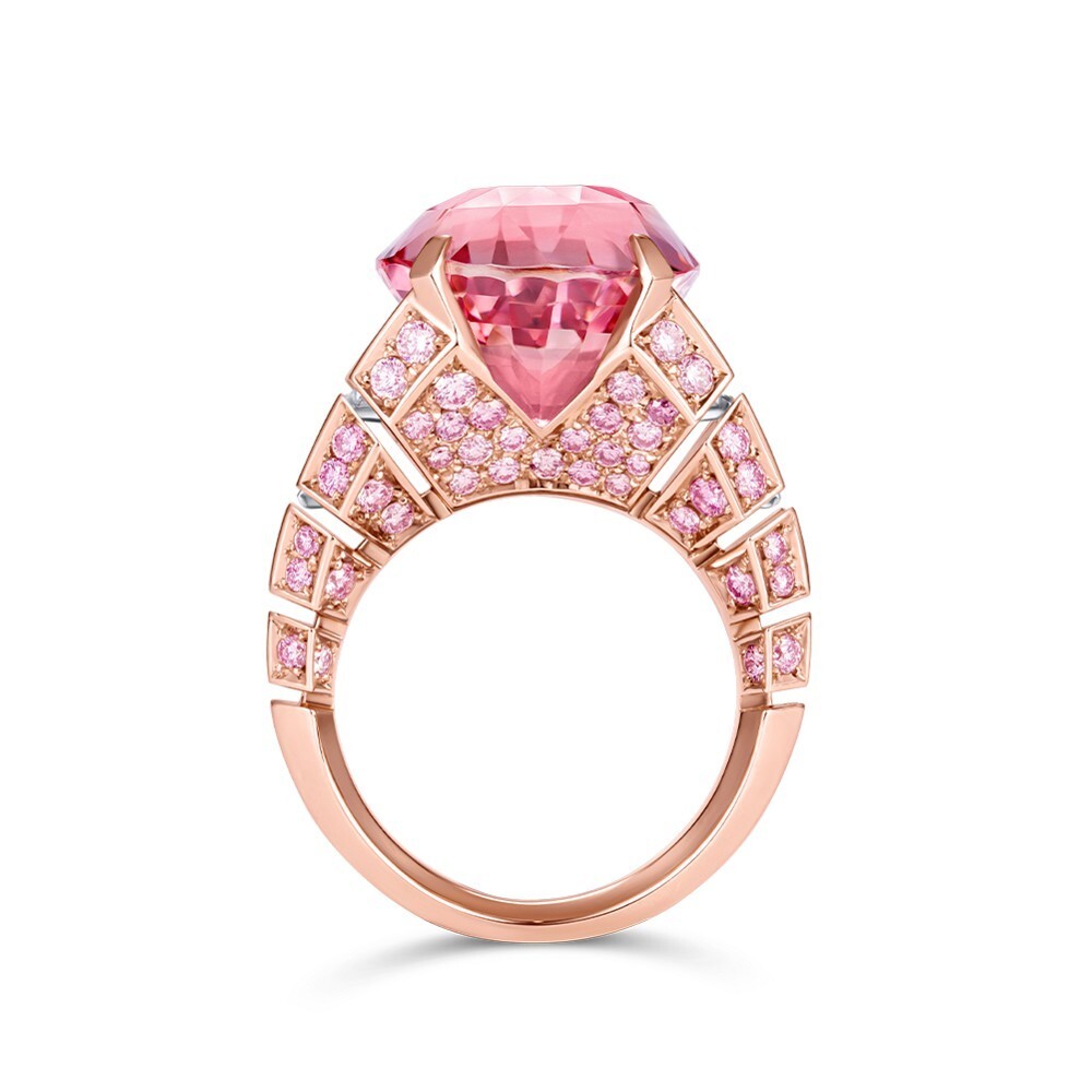 Несколько изделий в новой коллекции инкрустированы пурпурно-розовыми бриллиантами — разновидностью цветных бриллиантов с едва заметными фиолетовыми оттенками в преимущественно розовом цвете, что делает цвет еще более ярким и насыщенным. Одно из колье Harmonia украшено расположенными в шахматном порядке крупными бесцветными бриллиантами грушевидной формы и мелкими овальными пурпурно-розовыми бриллиантами, создавая гармоничный и яркий цветовой ритм; Еще один браслет Prisma использует ромбовидный элемент дизайна, чередуя пурпурно-розовые и бесцветные бриллианты, создавая поразительный контраст между яркими розовыми и чистыми белыми тонами.
